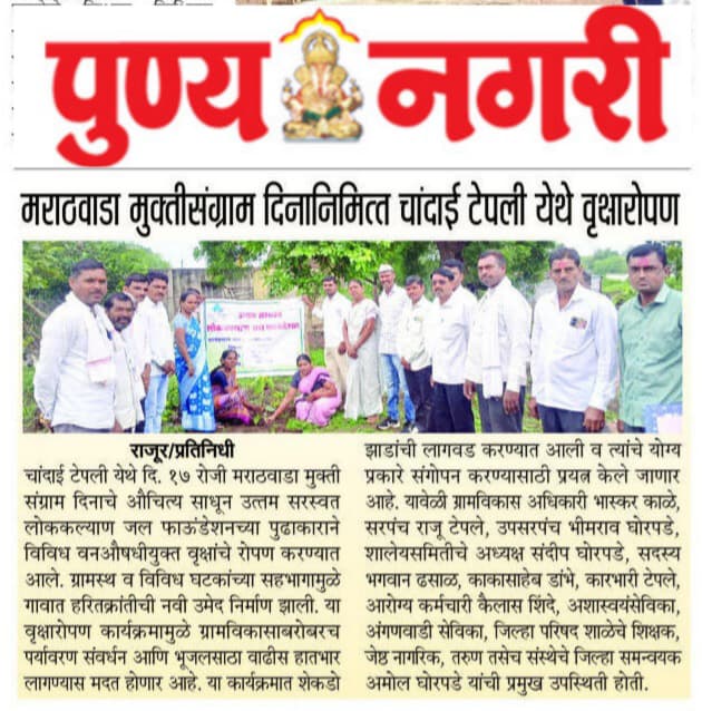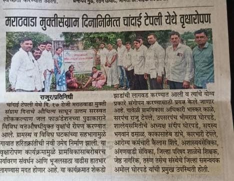 To honor the historic Marathwada Mukti Sangram Din, the Uttam Saraswat Lok Kalyan Jal Foundation conducted a large-scale tree plantation drive at Chandai Tepali. The initiative aimed to promote environmental conservation, increase green cover, and support sustainable rural development in the village.